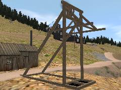 generic Small Two-post Headframe 1Build from a 1903 drawing of a typical Small Two-post Headframe used in the Cripple Creek District, CO. It was a typical small prospector type of frame, up to 300ft in depth. For more info, please visit my webpage. Model has a 'wire connector point' for connecting a cabelspline from a hoisthouse to the headframe.