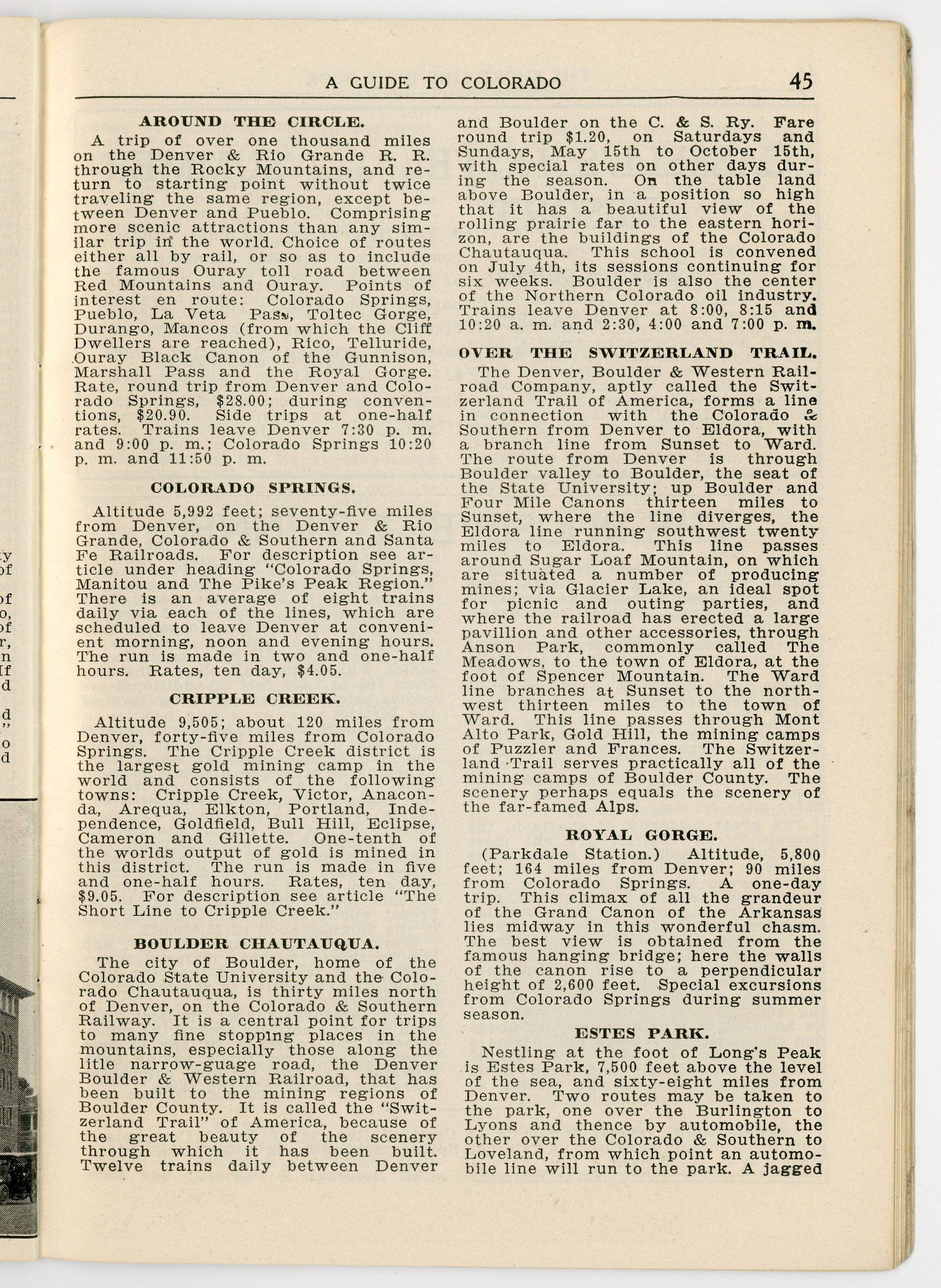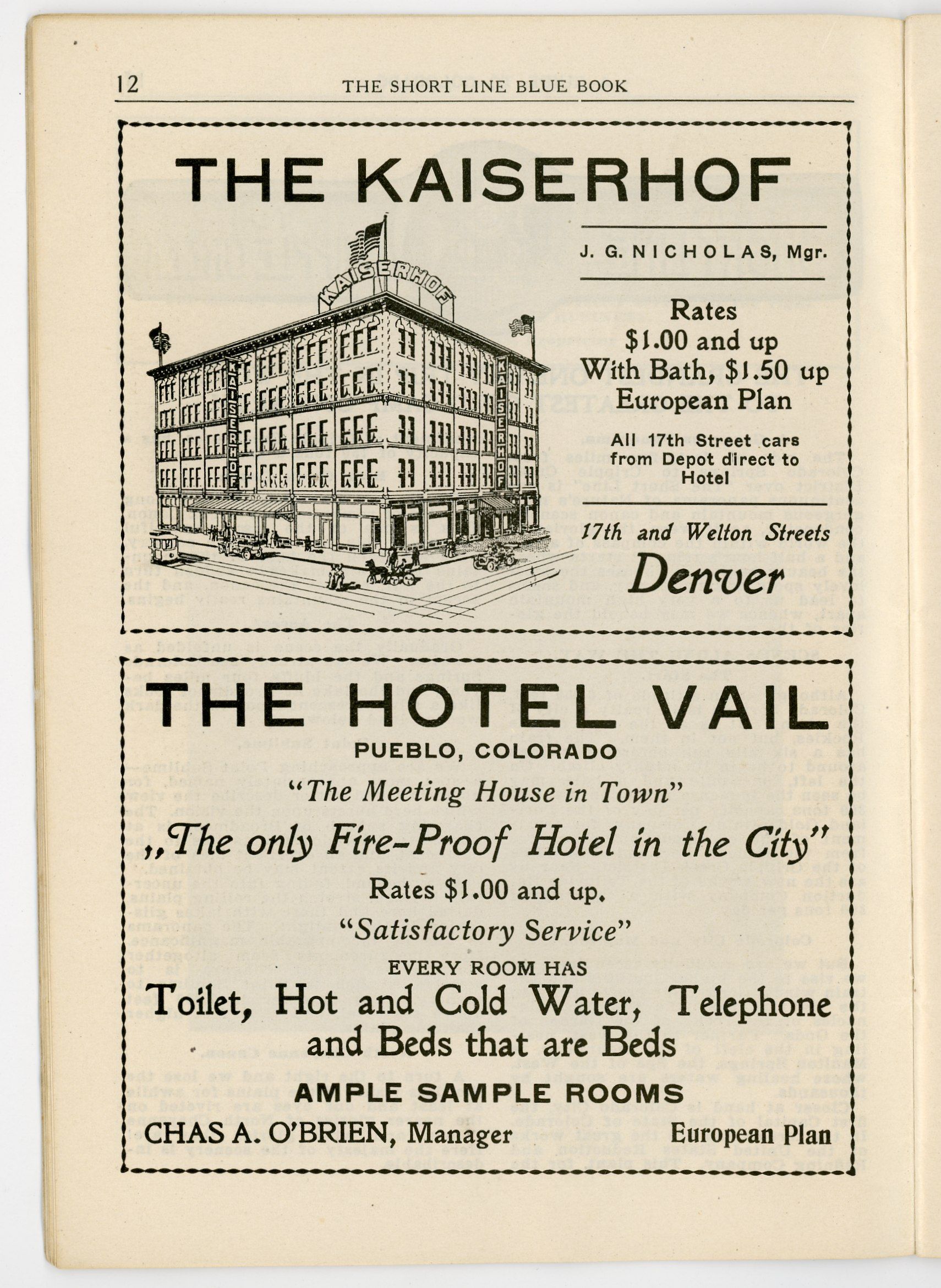 The Book consist of 68 pages including front and back page, but only 64 of them is numbered. This issue is Volume 13, Number 6 and is dated June 1912. It contains pages filled with advertisements, various railroads timetables, images and text for not only the Short Line, but most of the larger area extending to all of Colorado for some pieces of info.