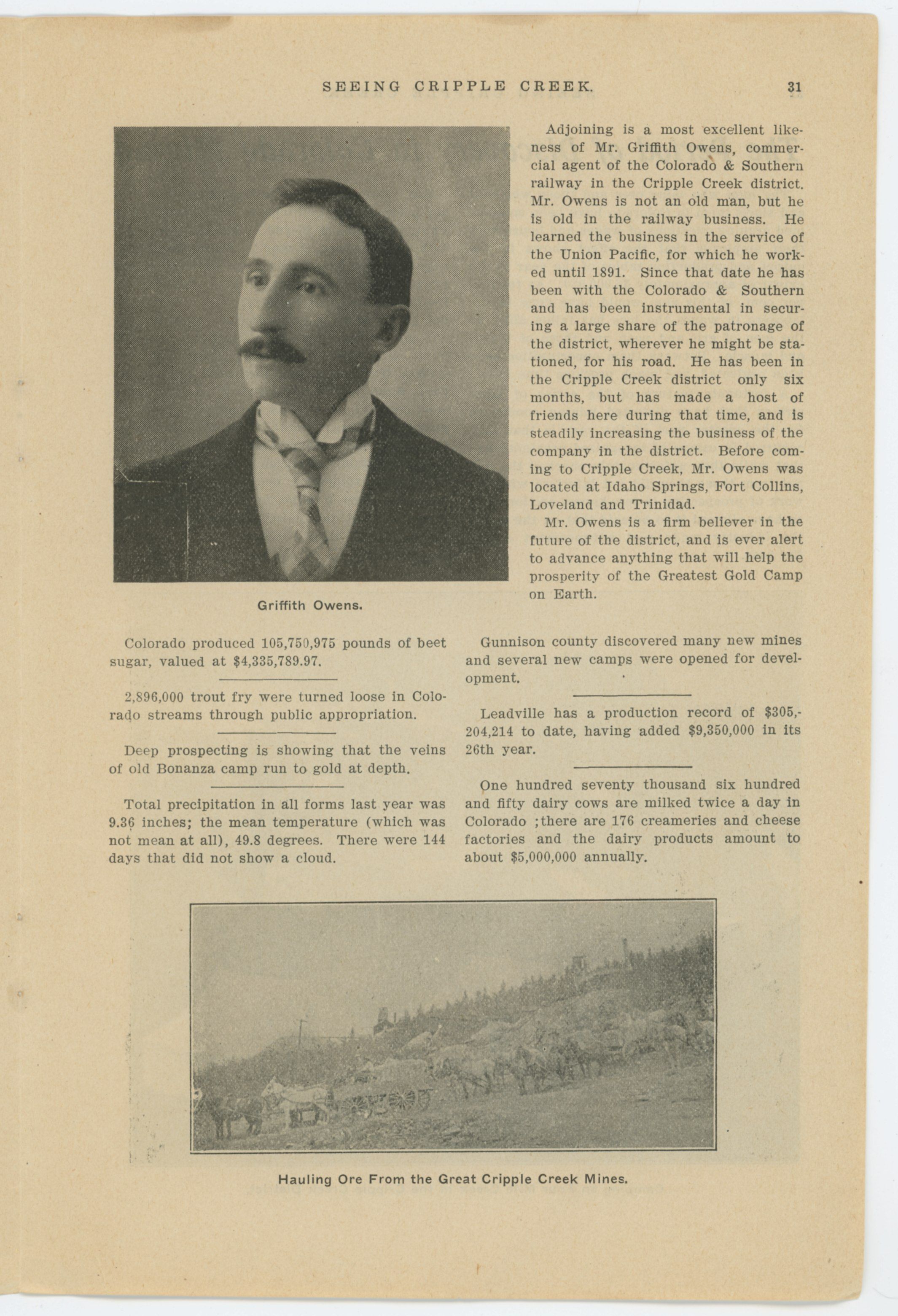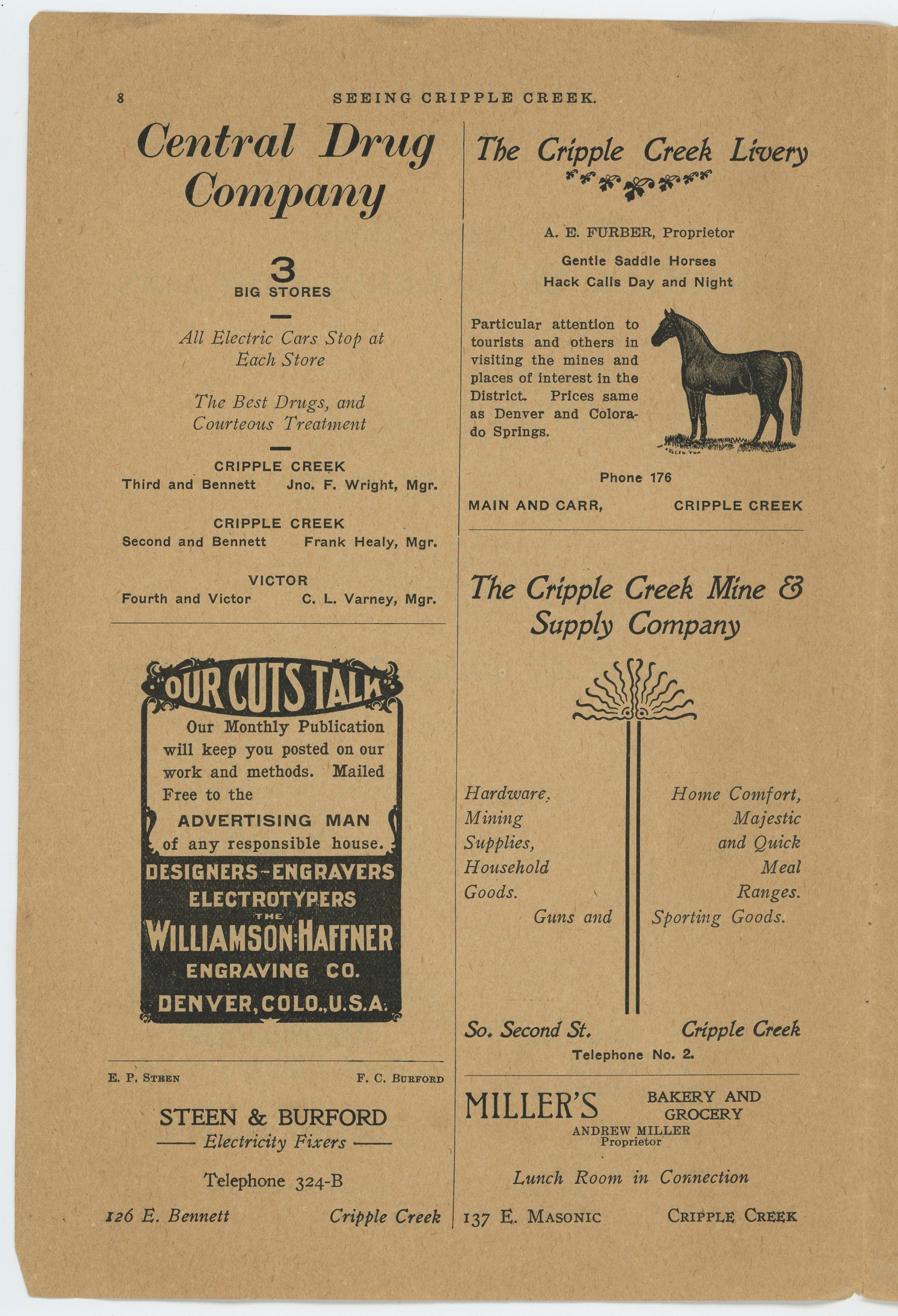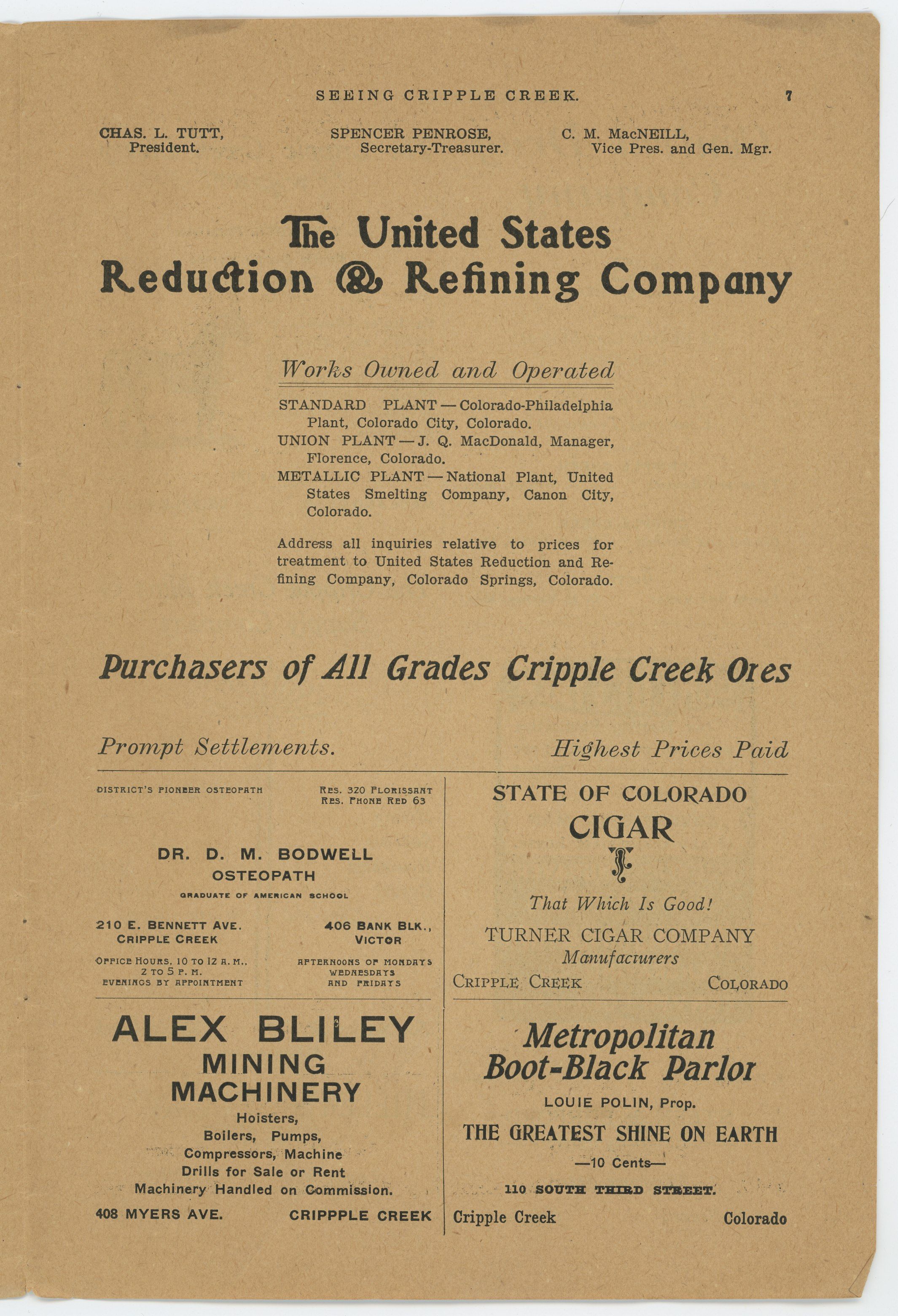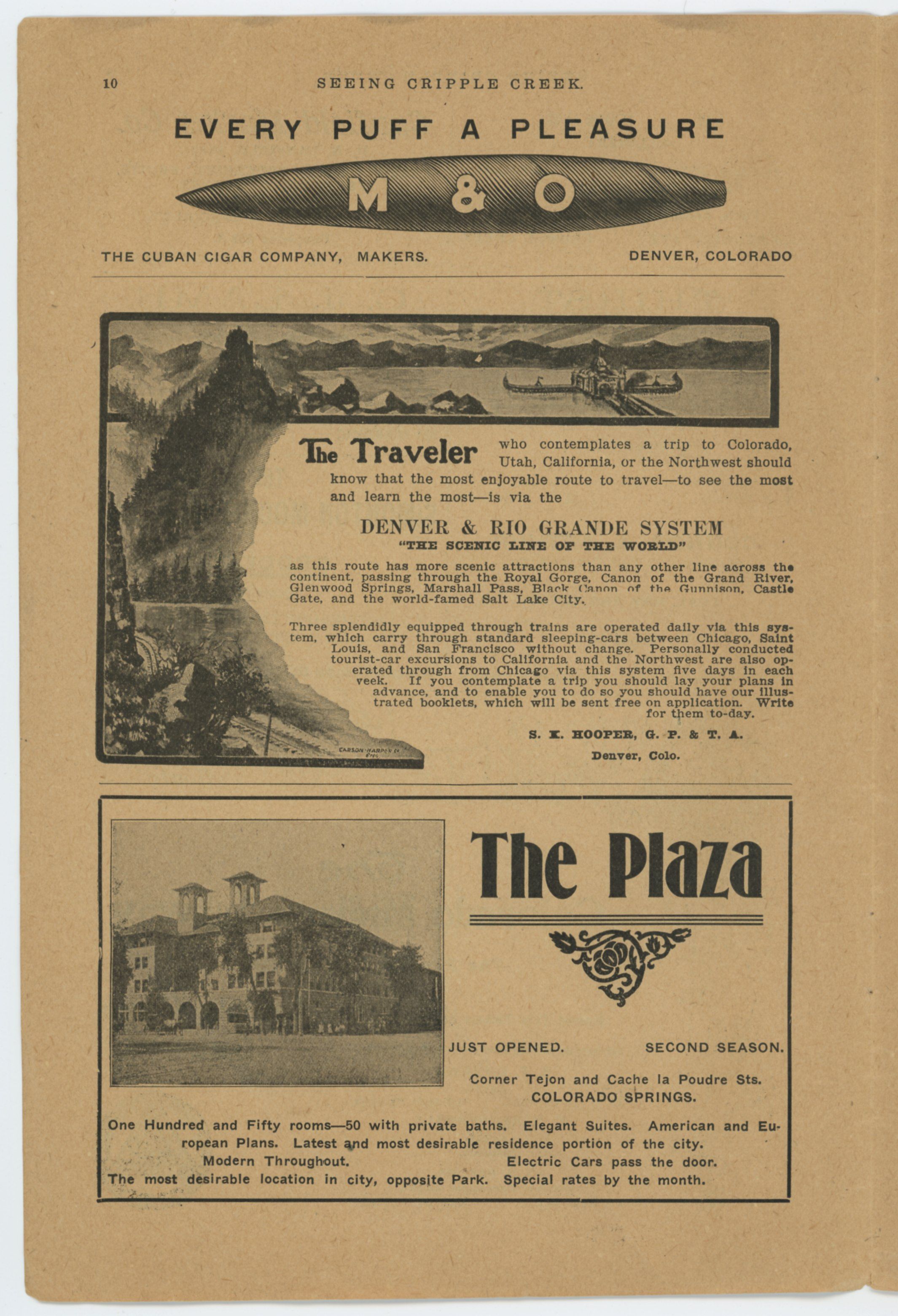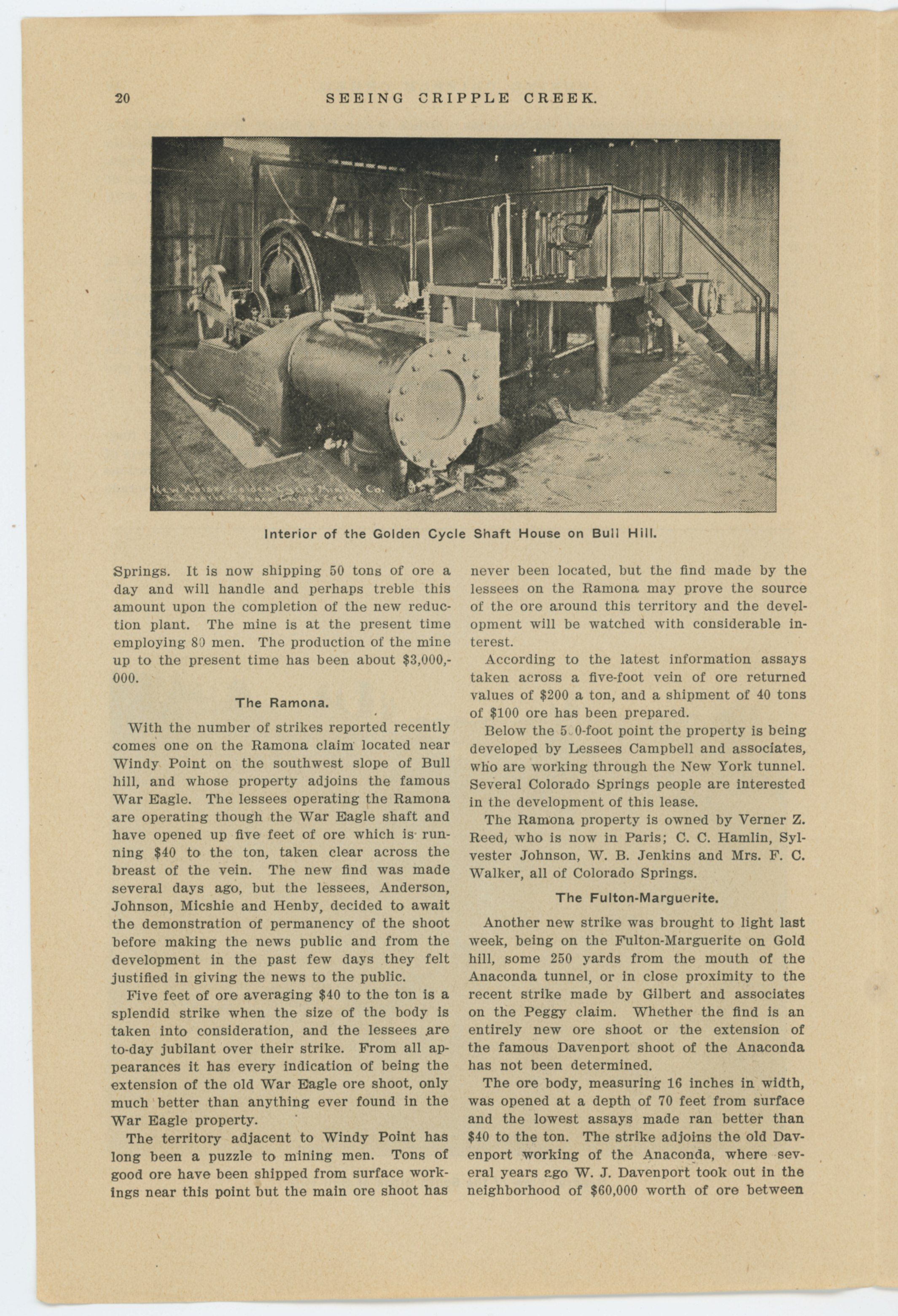 This issue of the Seeing Cripple Creek series is Volume 2, Number 2, and contains 52 pages with the covers, mostly numbered, starting from page 3 till page 50. The pages are filled with ads, various articles and images; not only about the District, but also extending to all of Colorado for some pieces of info.